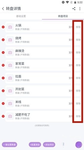 项目列表和组合转盘的转盘列表都有一个“排除”,排除不同于删除,排除是临时禁用本项目/子转盘。