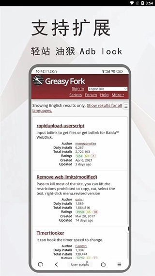 2、与主流浏览器相比,它的浏览更为便捷,并且还提供了多种扩展的附加功能和脚本。
