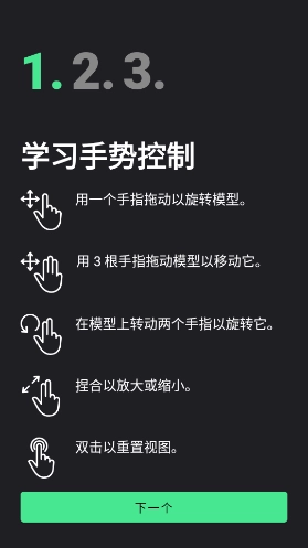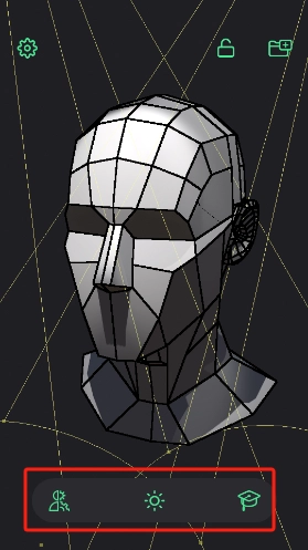 5、模型展示:下方三个按钮分别用于模型调整、光照调整和定时练习。