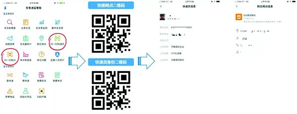 该功能仅对三级邮政管理部门开放使用。工作人员只需扫描快递员的个人身份二维码,或是快递网点专属的二维码,就能快速查验到快递员的身份信息以及网点的备案信息。