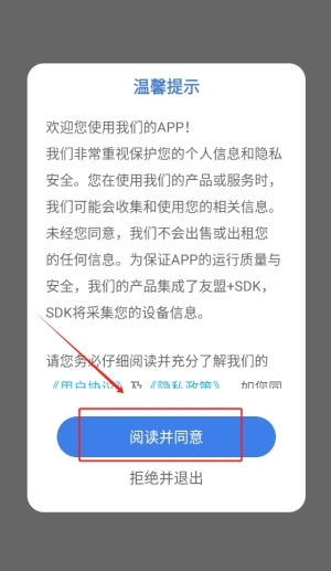 请点击同意按钮进入应用程序,这将视为您接受相关使用条款与隐私政策,以便顺利启用平台的各项功能。