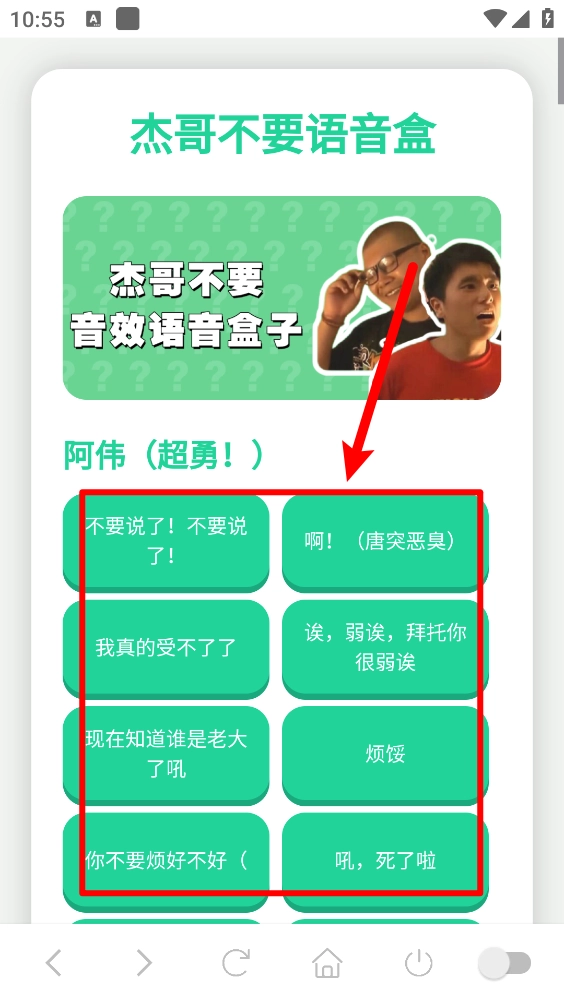杰哥不要语音盒,以网络流行内容为主的免费语音包工具,的语音资源无需安装,点击即可播放,提供大量适用于日常娱乐与社交互动的语音素材。可在线收听,也可体验实时变音效果,操作简单直接,适合在聊天、直播等轻松场景中使用。
