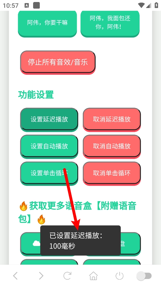 5、如图,成功设置后,每次点击播放都会自动延迟。