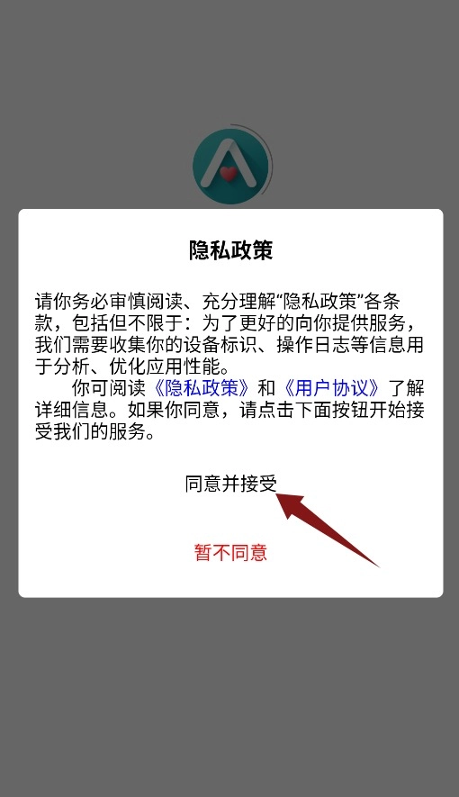 1、应用首次启动时会弹出协议确认窗口,需点击同意该协议后才能进入主界面。