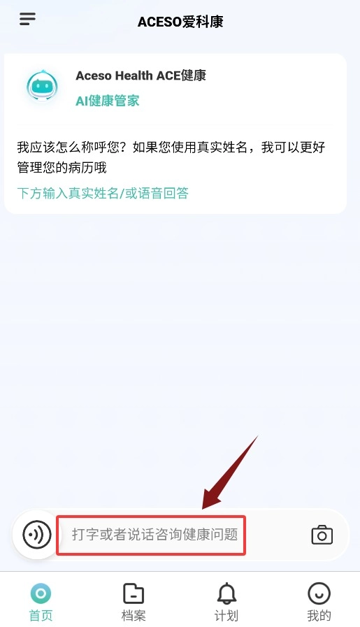 2、首页支持文字输入或语音咨询两种方式,能让您快速获取健康相关解答。