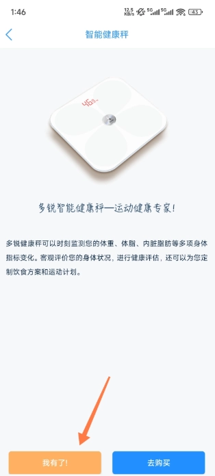 1、打开软件,首先你得先拥有一个多锐智能健康秤