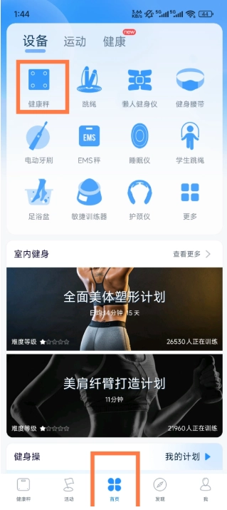 2、在首页点击健康秤