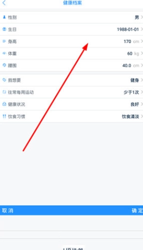 3、最后在“健康档案”界面,我们就可以点击“身高”选项来重新设置身高了。