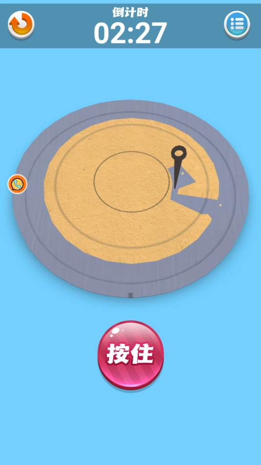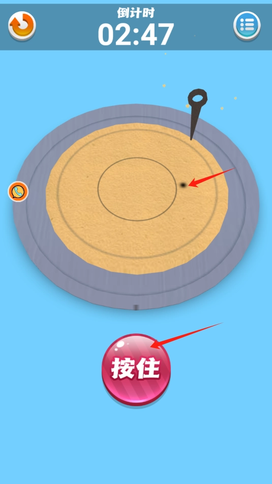 游戏里,滑动屏幕调整针的位置,长按下方按钮,黑针就会依据黑点的位置下插完成抠图操作。