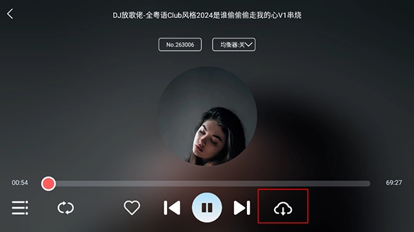 1、首先我们打开软件,点击一首我们觉得好听的歌,然后在里面有一个向下的箭头,点击这个箭头。