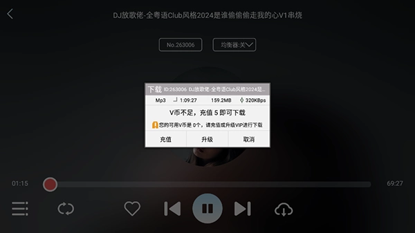 2、然后我们支付完歌曲要的V币后,就能把这首歌过来了。