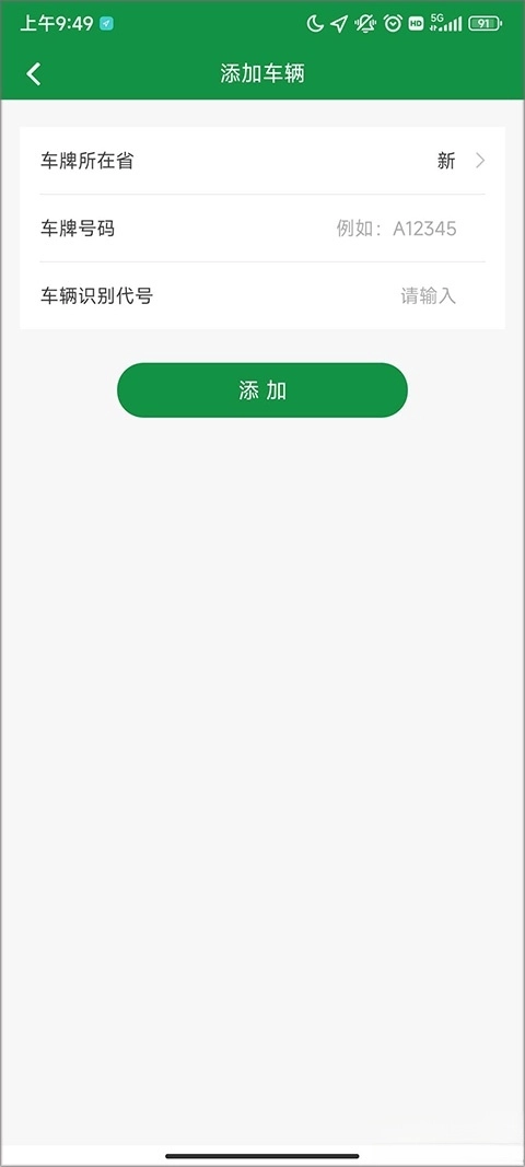 3、你也可以手动输入省份、车牌号码以及车辆识别代号。