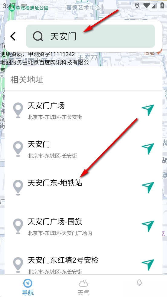 点击输入框,输入地点关键字