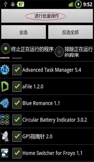 2、按下手机左下角的“菜单键”,即可进入图二界面。接着,点击红圈标注的“批处理”选项。