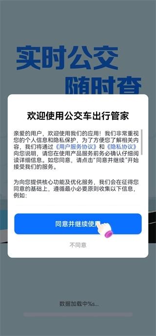 1、阅读并同意用户服务协议和隐私协议后,点击继续即可使用。