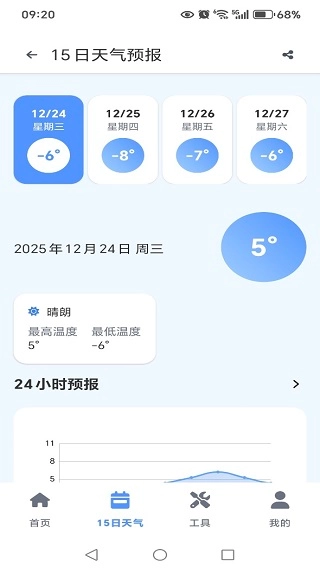 1、不再依赖笼统的天气预报,它将未来24小时细化到每个小时,让每小时的天气变化都一目了然。