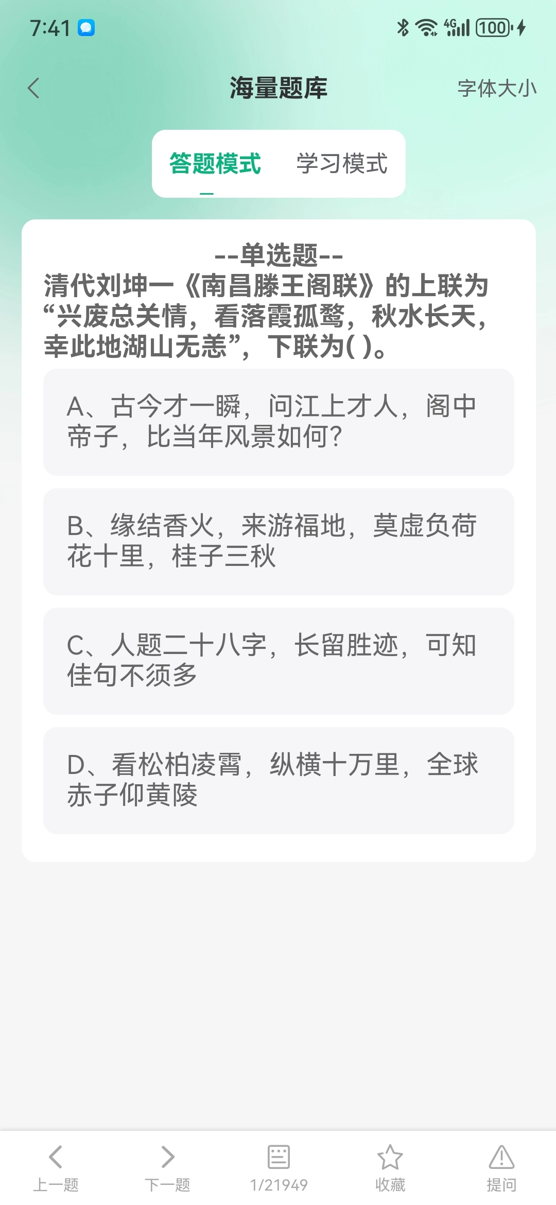 做题期间,使用者能够将重要题目添加至收藏夹。