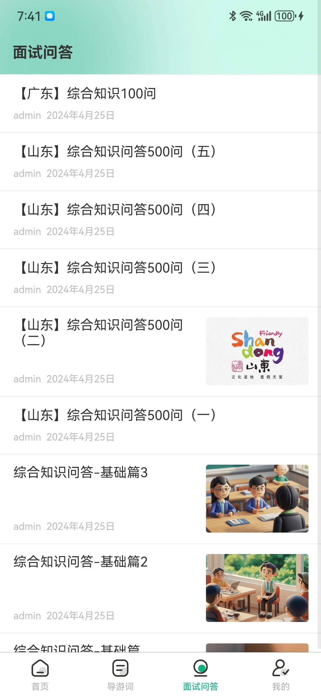 使用者还可以随时在线查看和学习各类面试问答以及导游讲解词。