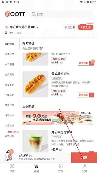 1.打开库迪咖啡进入首页后点击“外卖配送”服务