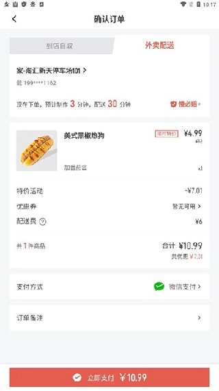 4.再进入支付页面完成支付等待外卖员送达;