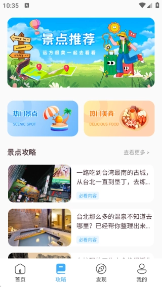 3、在攻略页面中,你能够获取热门景点、热门美食等相关信息,同时也能查看景点攻略。