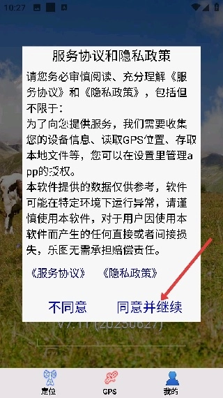 1.打开软件后先阅读服务协议和隐私政策