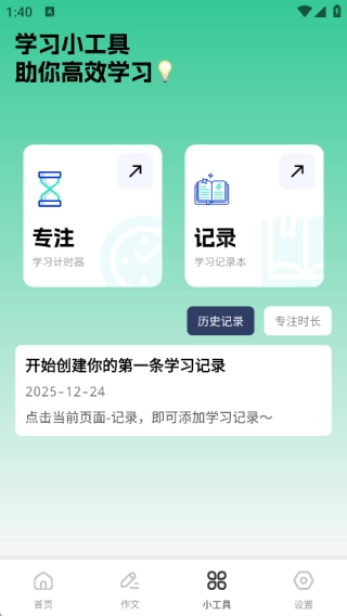 3、搭载专注学习辅助工具以隔绝外界干扰,辅以实用学习记录本,可随时整理知识点、回顾学习成效以巩固记忆。