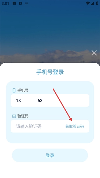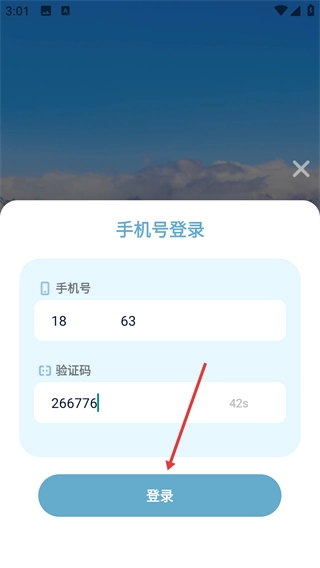 在验证码输入框中填写收到的验证码后,点击【登录】按钮提交相关信息,即可完成账号登录操作。