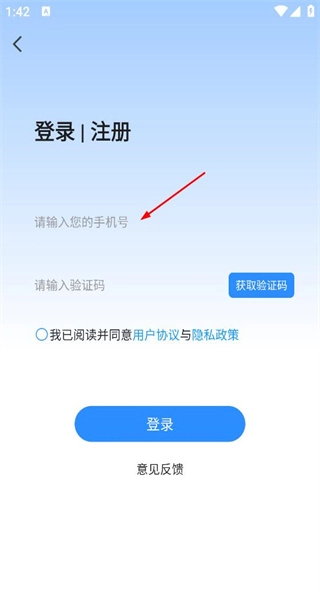在登录注册页面,输入手机号码,获取并填写验证码,勾选用户协议后点击登录按钮,即可完成账号登录流程。