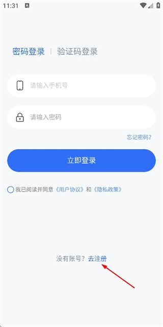 1、在登录页面点击去注册选项,进入注册账号页面。