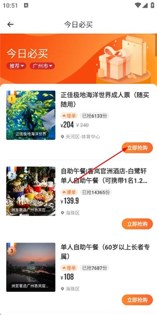 2、在今日必买页面找到该商品,点击对应的立即抢购按钮,即可进入商品详情页面。