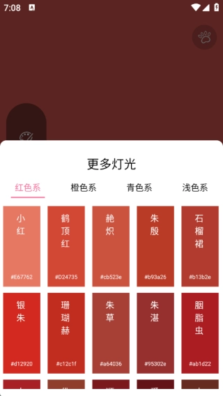点击氛围灯后,可选择多种不同灯光,这些灯光还按照不同色系进行了分类。