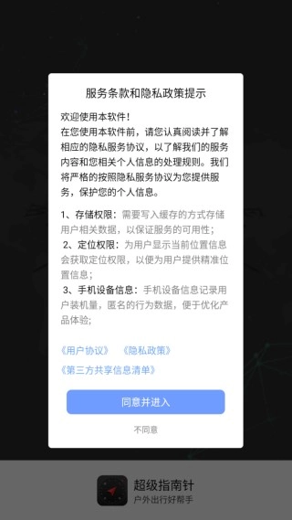 1、完成软件安装操作,新用户需同意该软件的用户协议与隐私政策。