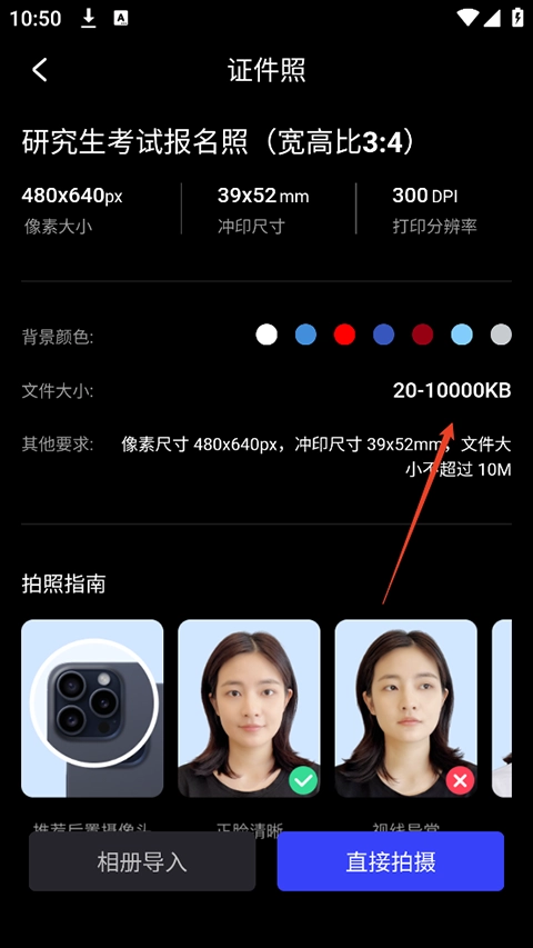 而像研究生报考的照片大小可以达到10000kb