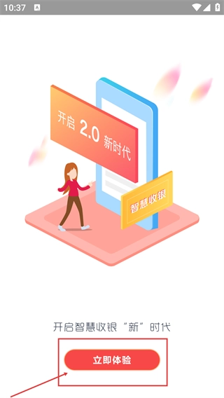 1、在【开启2.0新时代-智慧收银】引导页,点击【立即体验】按钮,可进入软件功能界面。