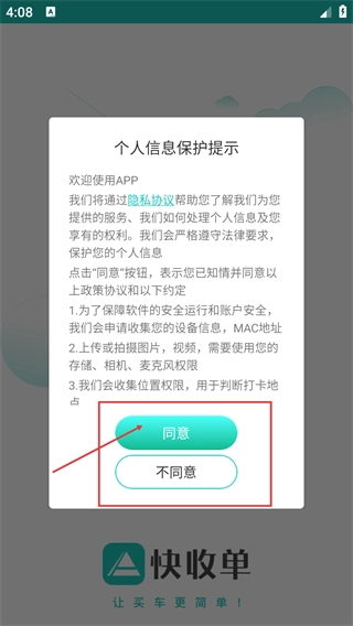 进入软件后会弹出【个人信息保护提示】窗口,需点击【同意】按钮,方可继续使用软件的各项功能。
