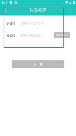 3、进入【修改密码】页面后,首先填写【手机号-请输入11位手机号】这一栏,接着点击【获取验证码】按钮,完成这一步操作后就能激活后续步骤。