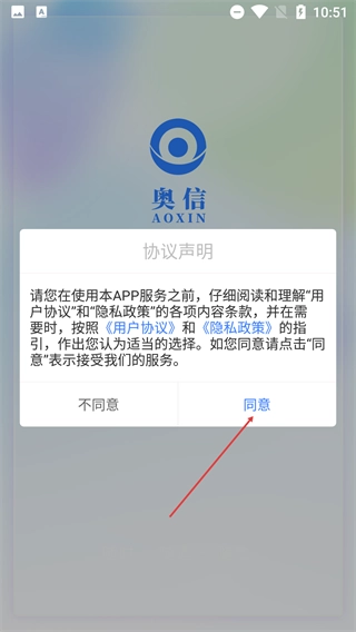 1、阅读【用户协议】与【隐私政策】内容,确认后点击【同意】按钮,进入应用后续流程。