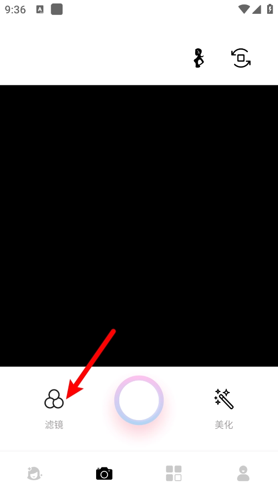 3、在拍照页面,如图所示,点击"滤镜"。