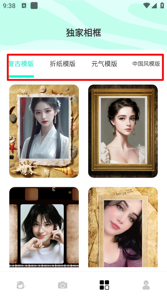 5、最后在“独家相框”页面,能够挑选多个相框模板来制作图片。