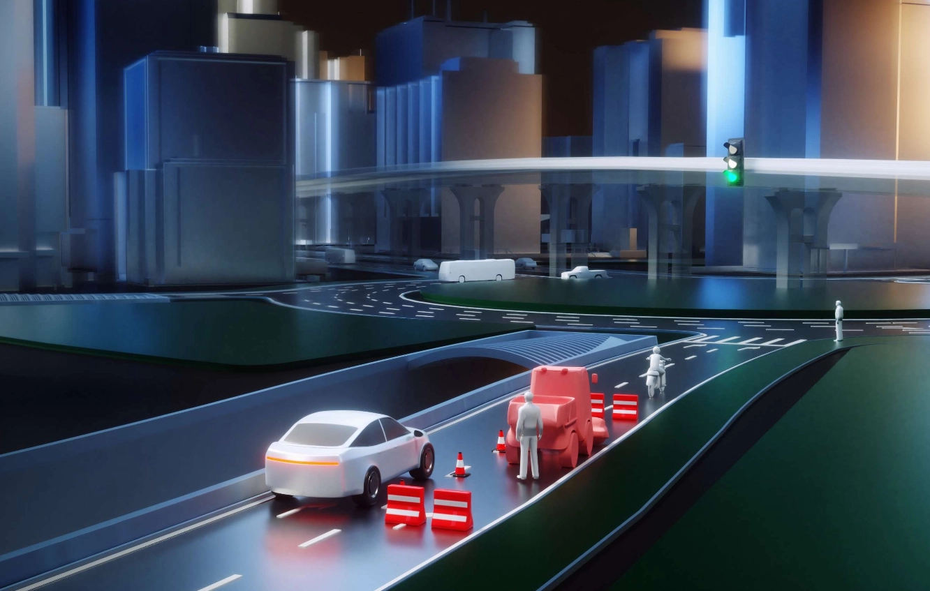 真实还原楼宇、道路及地面标识、电子眼和路牌,让用户沉浸在真实的虚拟场景中。基于车辆感知能力,对自车周边交通参与者及道路设施进行动态展示,提升辅助驾驶体验