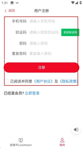 1、进入直播号后,点击底部的“我的”选项,即可进入用户登录页面。