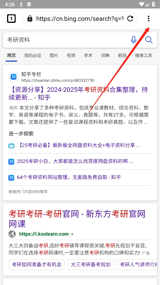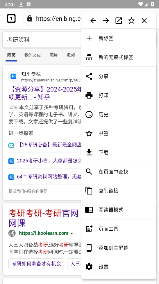 搜索结束后,点击右上角的三个点会弹出一系列页面工具,选择相应的工具进行使用。