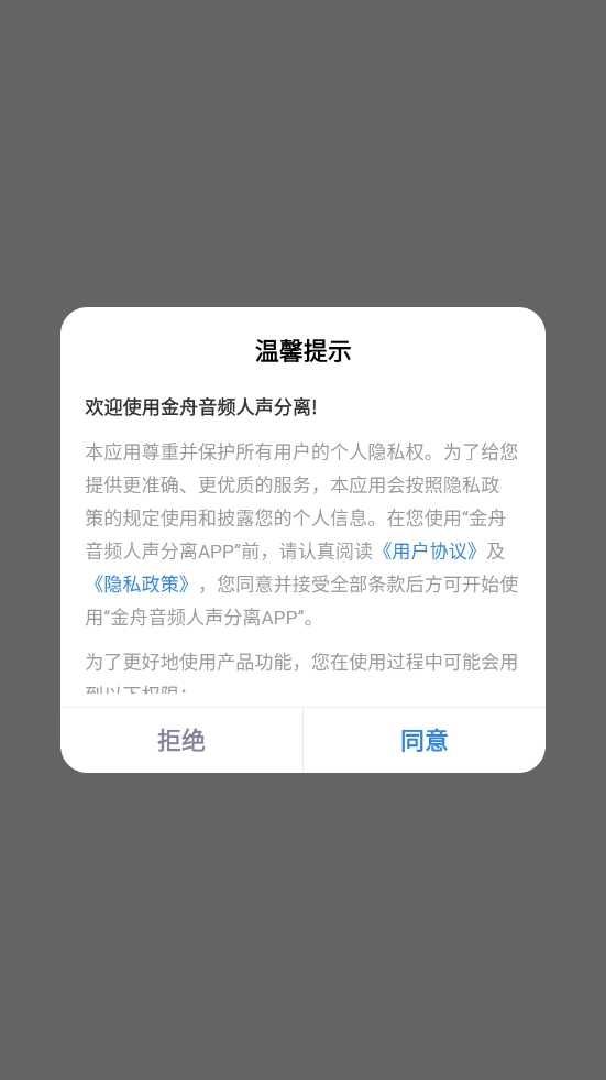 安装金舟音频人声分离软件,同意相关的政策与协议。