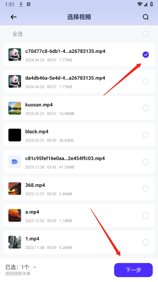 挑选你需要的音频资源,支持同时选择多个进行处理,接着进入下一步操作。