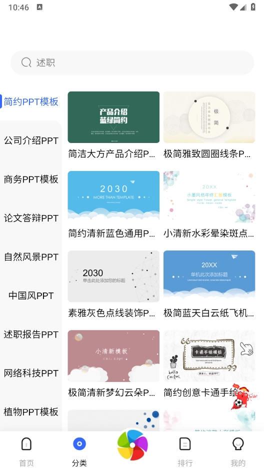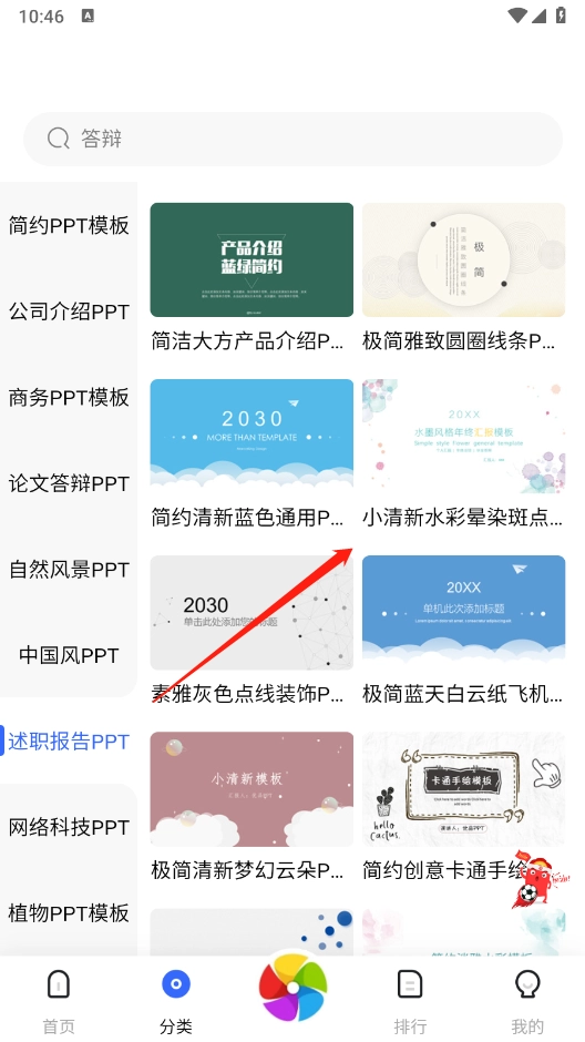 进入“分类”页面后,能看到这里汇集了答辩PPT、商务PPT等多种类型的PPT。