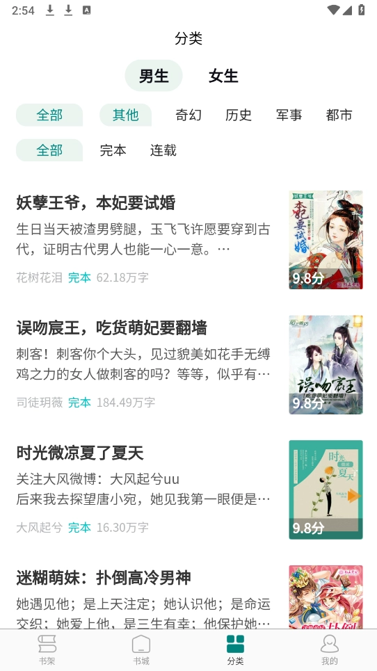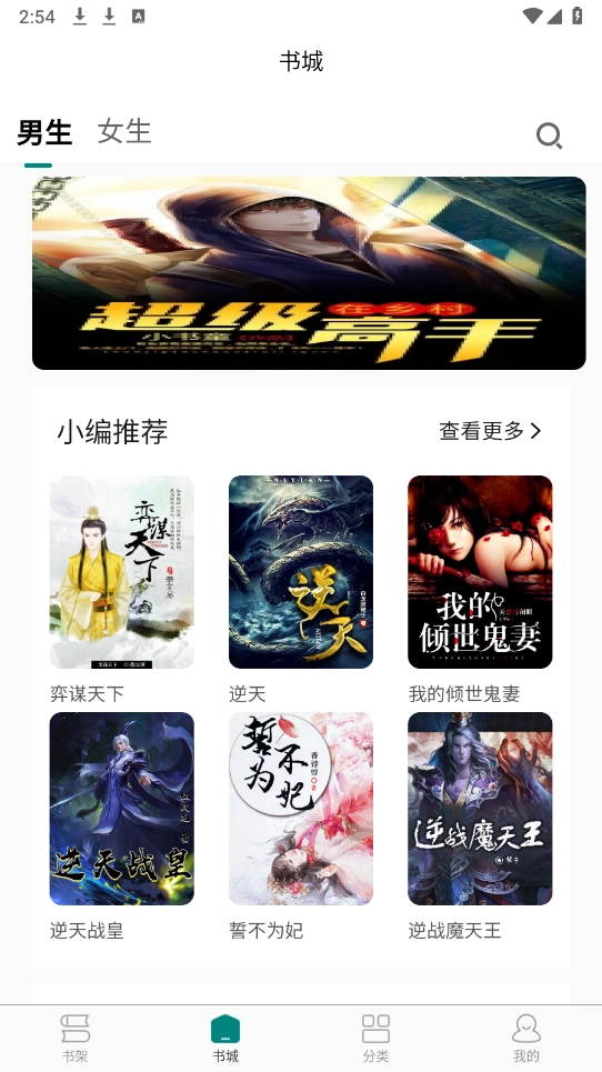 打开软件后,“书城”和“分类”这两个栏目里,汇聚了大量的小说资源,无论是适合男生的还是适合女生的都涵盖在内。