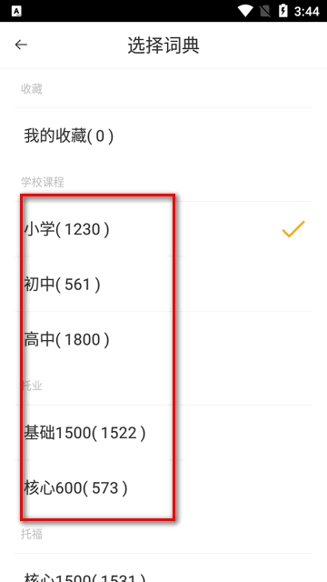 选择相应的英语学习阶段,包括小学、初中以及高中。