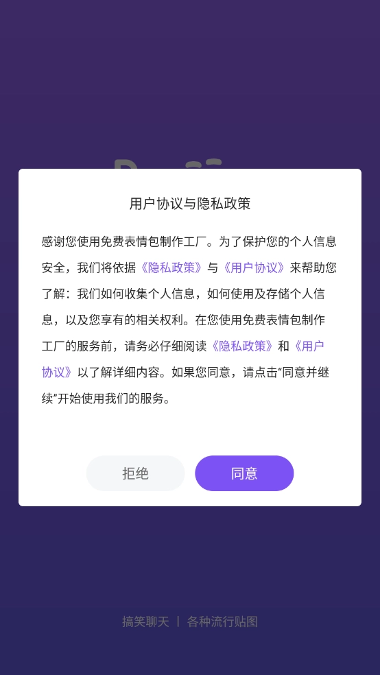 安装免费的表情包制作工厂软件,在同意相关政策与协议后即可进入使用。