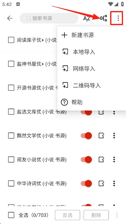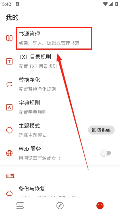 我的页面里的书源管理功能,能够借助链接来快速导入外部书源,以此拓展书籍的覆盖范围。